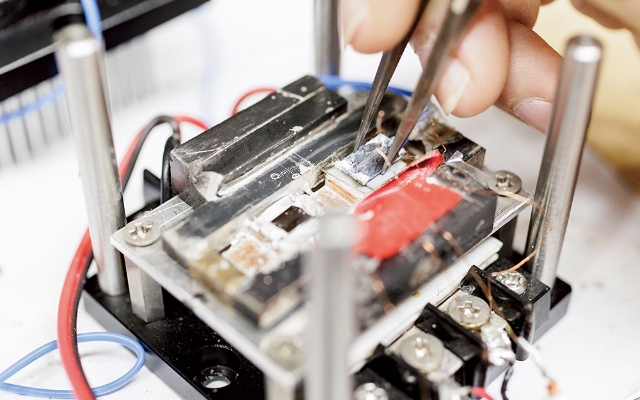 今私が取り組んでいる研究は、小型の熱電発電素子の開発です。熱電発電とは廃熱からつくる電気エネルギーのことで、わずかな温度差でも発電できるのが特徴です。廃熱は身近なものでいうと、稼働中の冷蔵庫の側面などに発生する熱。近年、熱電発電は無駄な熱をエネルギーに換えるエコな発電技術として注目を集めています。その中でも、私が取り組んでいるのはスピントロニクス技術(電荷と磁気の2つの性質を活用する技術)を利用した熱電発電素子、STE素子(Spin Thermoelectrics)の開発です。