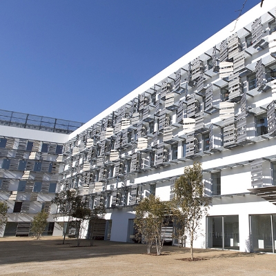 INIADのキャンパスは、最先端のIoT技術によって、照明や空調などさまざまな設備機器がネットワークに接続された「IoTキャンパス」。別所研究室の学生は、IoT研究に最適な環境のなかで、社会課題の発見や解決策の実現に取り組んでいます。