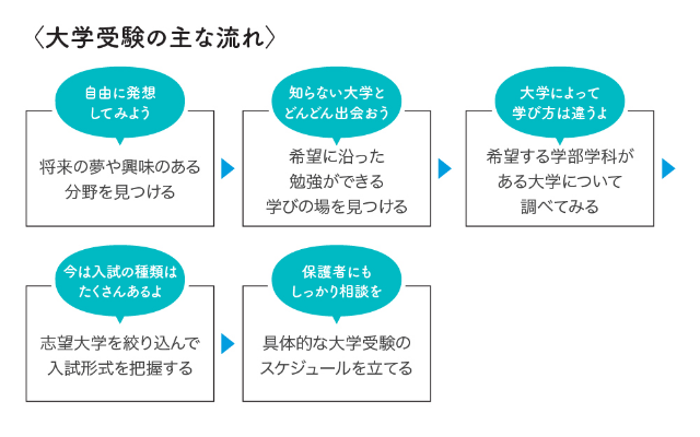はじめての大学選び、ひとりで悩んでしまうのは当然です。そこで同世代の友達だけでなく、両親や学校・塾の先生など“大人の相談相手”を見つけるのが大切。文理を越えてオープンキャンパスで大学の先生や職員に相談をしても、親身に相談にのってくれるはずです!
